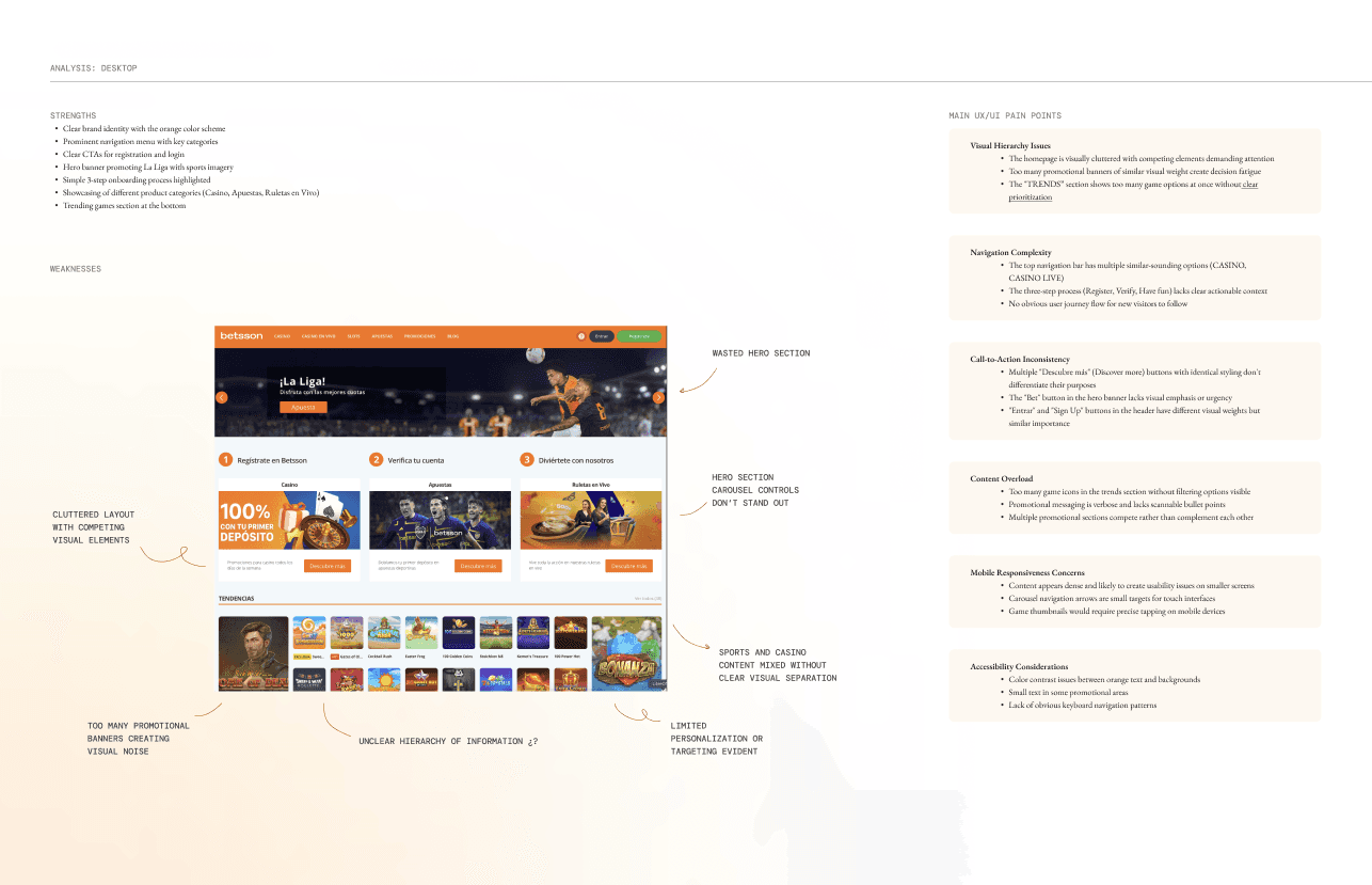 Betsson's website is the first touchpoint for thousands of potential players each day—but it wasn’t designed with today's users in mind. With 80% of traffic coming from mobile devices, the current experience suffers from high bounce rates, onboarding friction, and a failure to build the trust users need to convert.